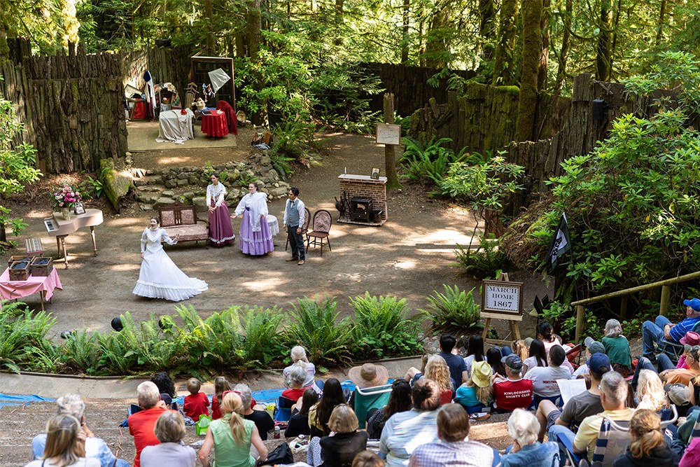 “The show must go on” has always been the motto of The Mountaineers Players who have been performing at the Kitsap Forest Theater since 1923. We produce shows to enrich the community by bringing stories to life in a magical outdoor setting that all ages can enjoy. We perform through all types of challenges (rain, record heat, cold, a closed Kitsap Cabin), and are thrilled to present Little Women on most weekends this summer. Come take a hike to visit our magical space and experience the wonder of outdoor theater for yourself!
