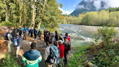 Camp Brown Day Use Area was constructed as a picnic area in the summer of 2019 through a collaborative effort between the Mountains to Sound Greenway Trust and the United States Forest Service Mount Baker-Snoqualmie National Forest. Located alongside the Wild & Scenic Middle Fork River, this picnic area offers scenic vistas and safe access to the river for visitors to utilize and explore. In addition to the picnic sites, there is an ADA-accessible interpretive loop trail circling the area. This trail was constructed with the help of excavators and other large machinery and is now in need of some restoration work to promote revegetation of native plant species. Volunteers will work with the Greenway Trust to restore the trail-side while enjoying sweeping views of Mount Garfield and the Middle Fork River.