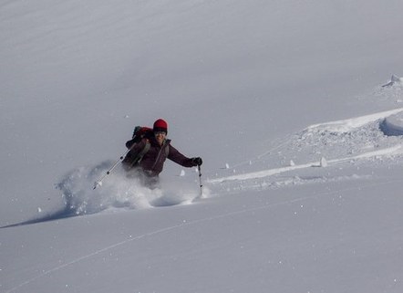 Glacier (MG) rated ski and snowboard trips require skis or snowboard with full metal edges, 457 kHz avalanche transceiver, shovel, avalanche probe, and climbing skins.