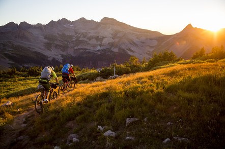 - A mountain bike with front suspension required; tire size minimum is 2.2 inches. Wider (>2.2in) and knobbier tires recommended for intermediate-advanced routes; streamlined minimalistic bikepacking bags required for more technical (intermediate to advanced) routes.