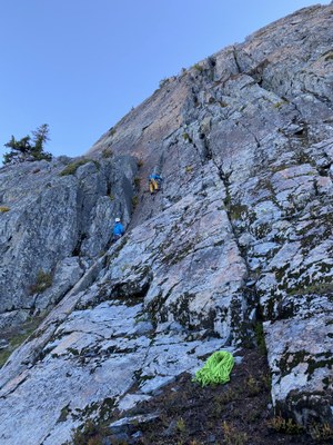 - Don't underestimate the rugged traverse from the top of the Great Scott basin to the base of the climb. While not far, it's very slippery side-hilling above consequential terrain that makes for slow going.
