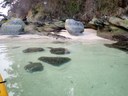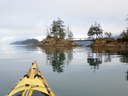 Sea kayaks on beach on Chuckanut Island.