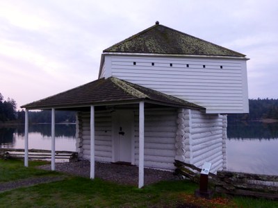 English Camp is located about 9 miles northwest of Friday Harbor on West Valley Road.