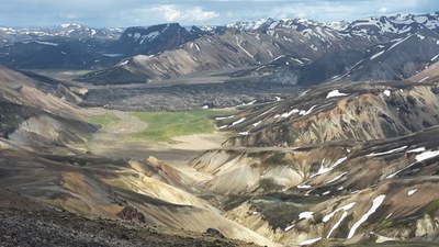 Iceland's central and southeastern highlands offer a myriad of stunning backpacking and trekking options. The Laugavegur trail and trails around the spa of Landmannalaugar provide well appointed huts and easy trekking among the crowds, but options also exist to get off the tourist track and explore the multi-colored active volcanic terrain and vast glaciers between basic huts without another soul around.