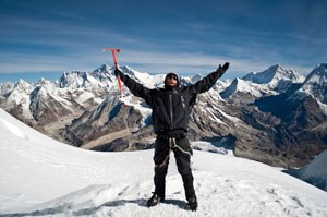 This outing combines the highest peaks on Earth, Himalayan culture, and mountaineering history. Nepal is a fascinating country with spectacular scenery, ancient Hindu and Buddhist religions, and friendly people. After touring three World Heritage sites near Kathmandu, we will fly to Lukla and trek up past the Sherpa village of Namche Bazaar and the Buddhist Tengboche monastery to the Khumbu region’s classic Mt. Everest viewpoint at Kala Patar (18,450 feet) and Mt. Everest base camp. Climbers continue on to summit 19,049-foot Pokalde, then up and over three 20,000-foot passes to the basecamp for Makalu (fifth highest mountain in the world). (See "Trek to Mount Everest Basecamp and Kala Patar" to enjoy the stunning trekking portion of this adventure without the climbing segment.) The trek is a strenuous hike; the climb is very strenuous because of the altitude. Porters will haul your overnight gear, so you carry only a daypack.