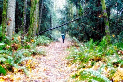 This area in Kitsap County between Bremerton and Silverdale was once destined to be a housing development. It was preserved through the work of local service groups, citizens, county officials and preservationists. The trails are very well maintained and signed at every junction. The heavily canopied trails make a great rainy day walk.