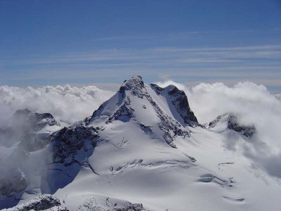 Ascend south to the the steep glacier on the right (west) side of the face of Mount Matier. This route is often guarded by a large bergschrund near its base. Crossing the bergschrund can be the crux of this route, especially later season. Climb 4 to 5 pitches to the summit ridge and scramble Class 3 rock up and left to the summit. Note that this will be hard ice by late season.