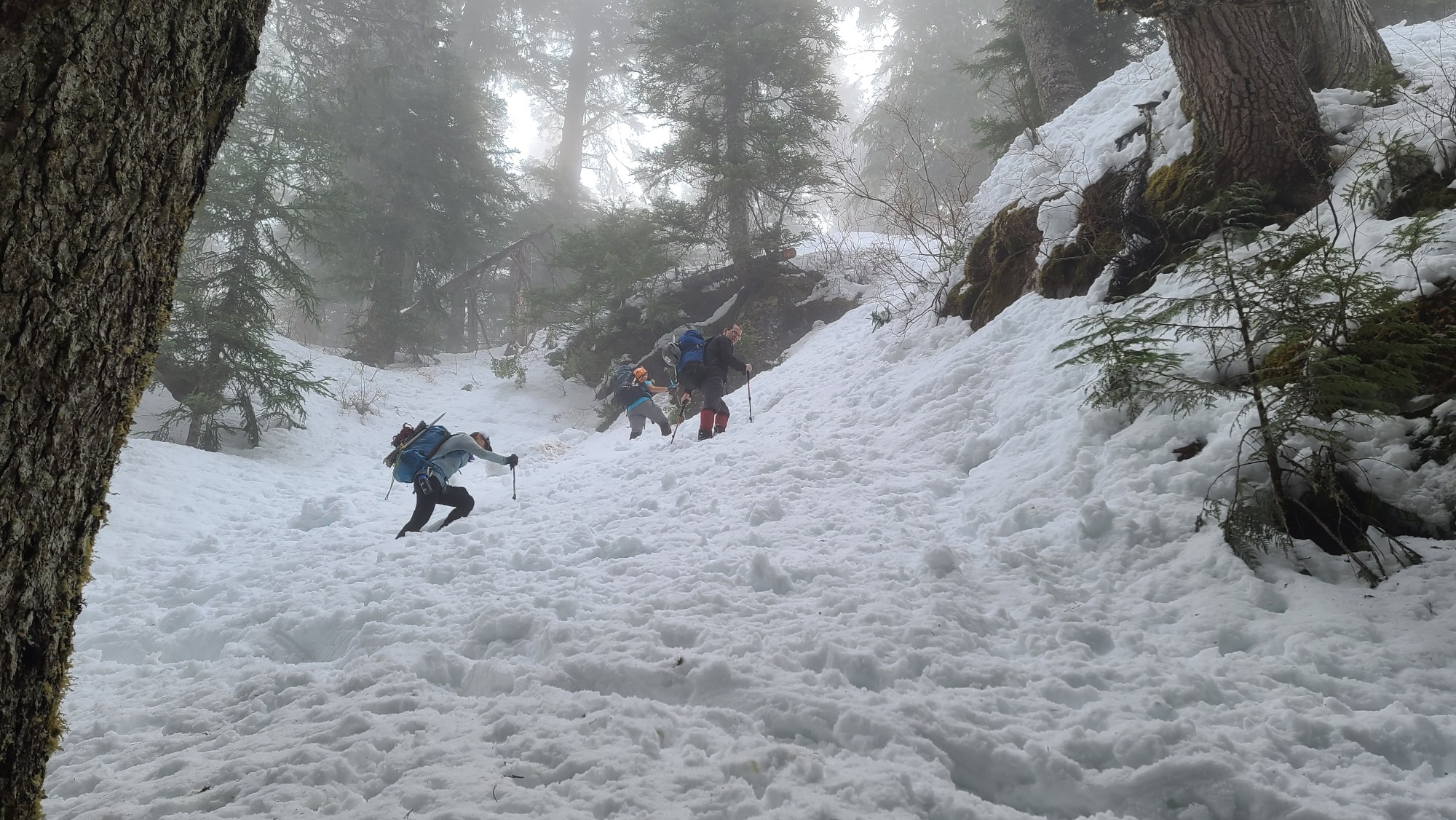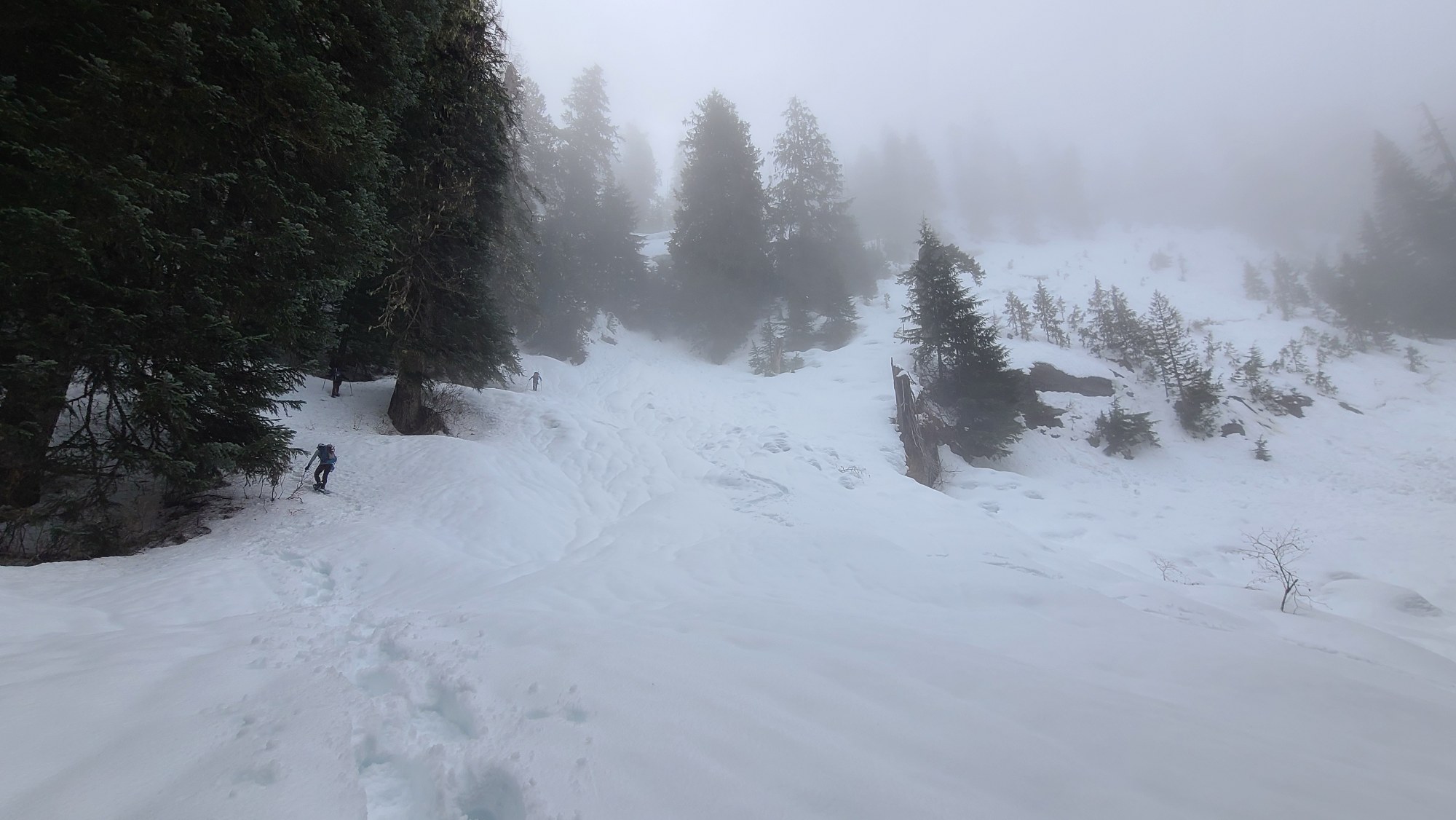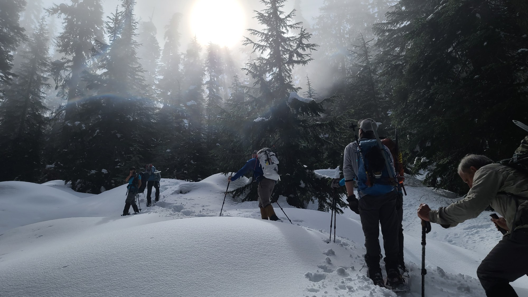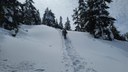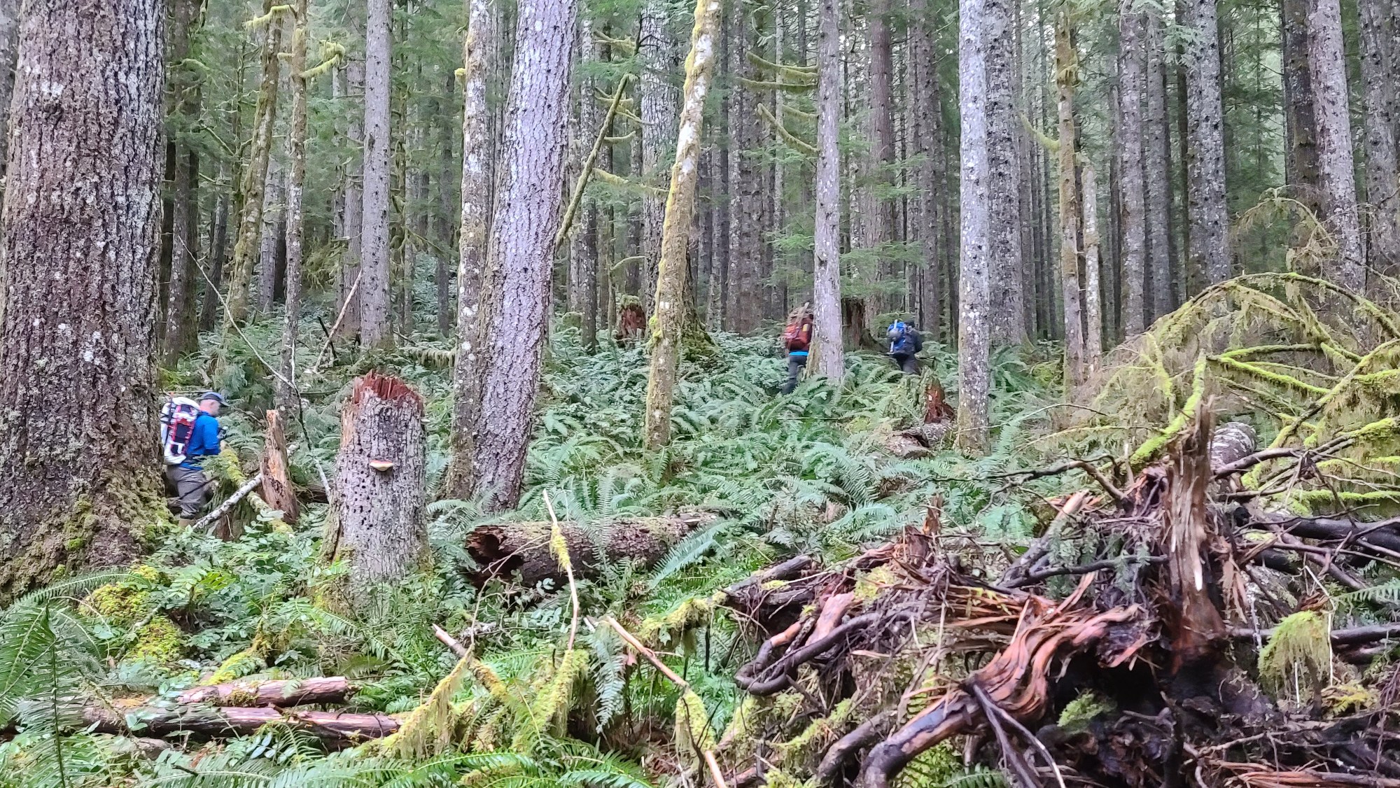 This is a view of Mount Price looking from the north (summit of Sorcery Peak). The three numbered circles show the route options. (1) is the gully above Price Lake that worked very well for David Jusish in 2017. (2) is the ridge east of Price Lake that was their second choice. (3) is the saddle northwest of Little Hester Lake that Mike Torok took in the 90's.