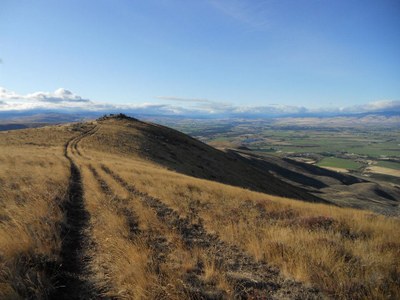 A trail leading out of the Yakima Canyon and up to a ridge and on to the 3,200-foot high point above I-82 offering grand views of Ellensburg, the Kittitas Valley and the Stuart Range.