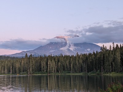 A campground in the Gifford Pinchot National Forest. It sits on the shores of Takhlakh Lake at 4,400 ft, and features breathtaking views of nearby Mount Adams. The campground has a short season, but makes a great base camp for exploring the many trails on the north side of Mount Adams.