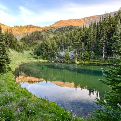 Before bed we discussed our plan for the next day. The original trip plan included an ascent of Gray Wolf on Sunday, however with the descent to the lake, that would mean a lot of elevation gain for day 2. Most of the participants had come from Seattle and would have to deal with long ferry waits. It was also the Sequim Lavender Festival, so we expected the wait times to be even longer. Nobody expressed an overwhelming desire to do Gray Wolf or return to our cars early, so we decided that we’d leave the decision to the next day.