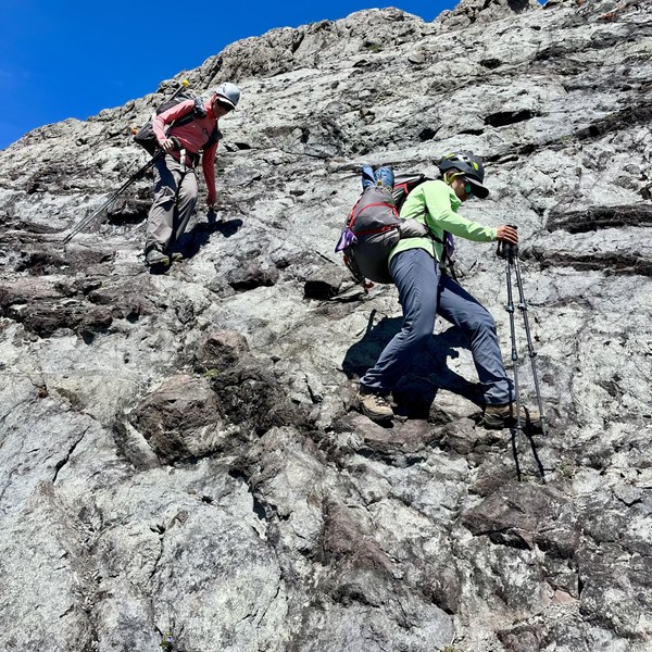 After our lunch break, we scouted out the traverse up and over Peak B. Even though Peak B wasn’t part of our original plan, it ended up being my favorite from a technical perspective. The rock was really grippy and solid for the Olympics, and we were able to practice finding tiny features on the rock to increase friction as we descended it.