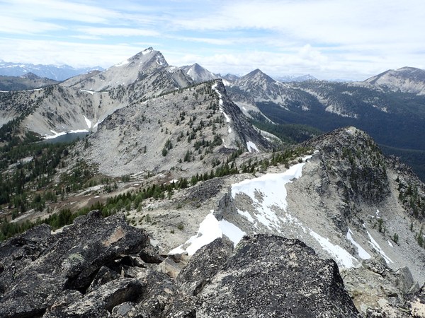 Here is a view we had from Seance Peak; Star Peak is the main summit in the picture, with Bernice Lake below.