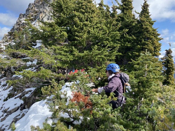 Five brave scramblers survived weekend crowds and a challenging tree problem for a successful summit of Coleman Pinnacle.