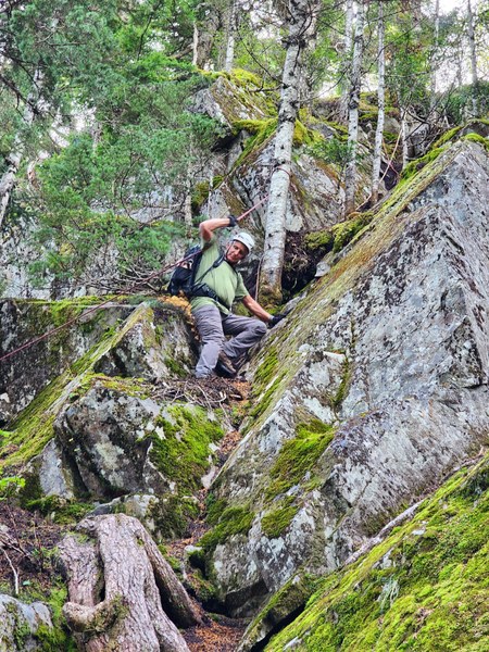 The route was spongy sod and moss and lichen covered and a little slippery due to all the duff, but there were lots of plants to pull on.