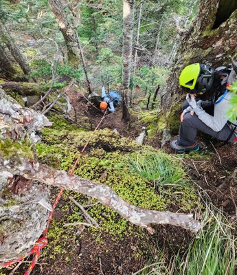 The 5 of us met at the Mailbox TH and consolidated into 1 car for the drive to the Dirty Harry's TH. We left the Dirty Harry's TH at 8am and reached the summit about 2.5hrs later. It took us a little time to find the existing ropes (actually 4) needed for the 70-80 feet descent. We could not have done the descent without them. No one in this experienced group needed a prusik.