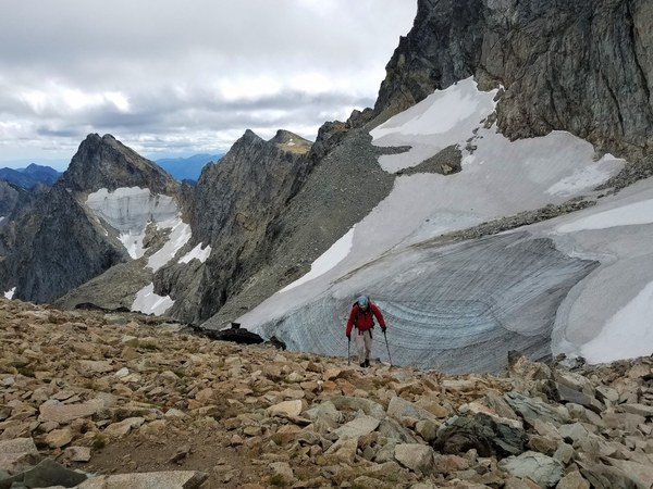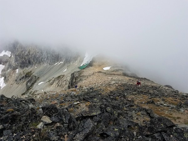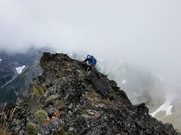 We leave our crampons and ice ax when back on rock. From here it's just a walk up to Greenwood Mtn's summit.