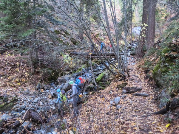 Looking back at the trail we left. Still some lovely fall colors.