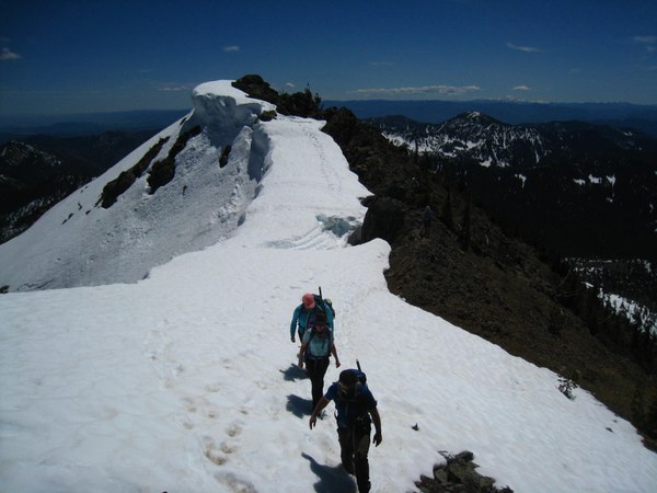 Patchy snow encountered starting at 5200'. Most of the route was free enough of snow to avoid snow altogether, although we frequently elected to stay on snow to minimize energy exertion. There was a large cornice remnant just below the summit, which we fortunately stayed away from.