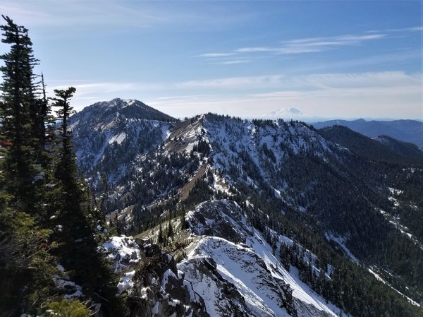 Looking back at Jolly Mtn and Rainier near the trail junction.