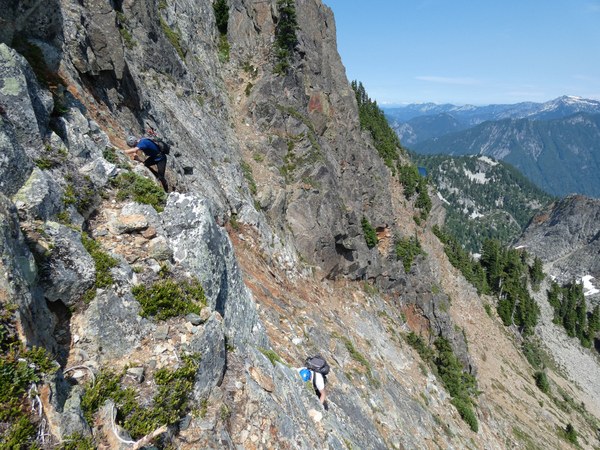 A scramble loop up Kaleetan's east face "White Ledges" and down the south route