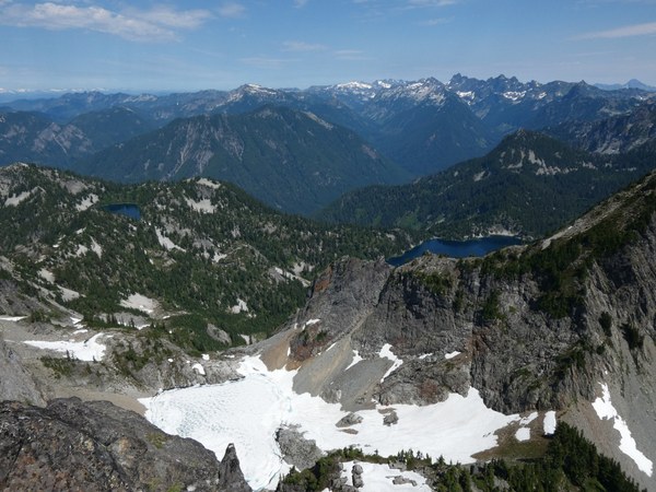 We reached the summit at 1:40 to enjoy the incredible views of the Alpine Lakes Wilderness all around. The summit register's notebook is completely full and needs to be replaced.
