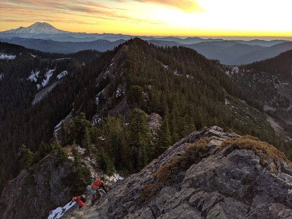 A pleasant hike and a short (cold) scramble on a clear day with great views at the summit. Enjoyed a phenomenal sunset with Mt. Rainier soaked in beautiful colors.