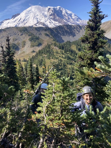 MRNP's Sunrise Visitor Center parking lot had plenty of available parking at 8:30 on a beautiful sunny morning. The Sourdough Trail saw few hikers and was in its usual good shape; however, obvious off-trail trampling had occurred over the summer. We met a handful of hikers coming up the Huckleberry Trail as we descended into the basin to begin our scrambling adventure on the McNeeley's. We spotted a few surviving wildflowers, but their prime had ended.