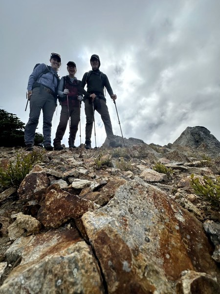 Thank you, Kristen, for the amazing shot from your cell phone! Clouds were moving in quickly, so we headed down to the Sourdough again and hiked another mile to our final summit. Dege Peak was last on the list with a good trail the entire way. By this time, clouds and fog were thickening. Visibility deteriorated and we were thankful to have had clear weather for our three scrambles before reaching Dege.