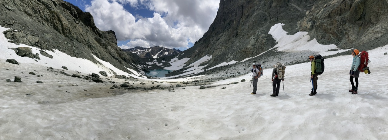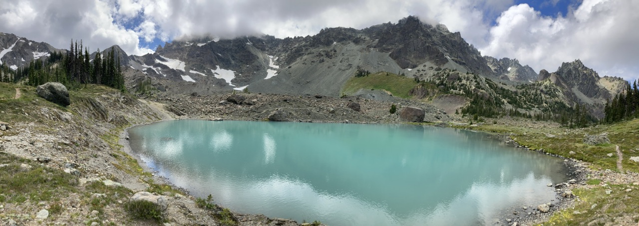 An incredible trip for well trained and conditioned parties, made even better this year by cooler temperatures (at the cost of some reduced views but with added drama in the photos ;). The total was ~14000’ of elevation gain spread over ~30 miles. Originally we’d planned on an extra day allowing an exit via Petunia Peaks and Goat Lake, but a bit of tendinitis on my part suggested a shortening from 4 days to 3 days which our party members graciously acceded to. With the reduced snow pack/extra boulder hopping in Surprise Basin the 3 day version of this trip (with exit via the Royal Basin and Lower Maynard trails on day 3) is probably the best way to do this trip. Photos from this and other trips to this venue can be seen here.