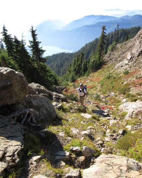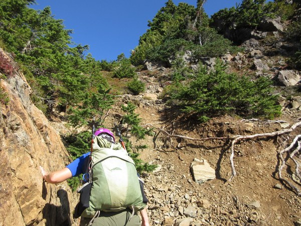 We descended the summer trail to save on our knees, and that's where we also saw a few other people. I would not recommend this route in wet or icy conditions; late summer or early fall when it's completely dry is best. Stats: 6.5 miles rt, 3,200' gain. In a nutshell, this was a fantabulous scramble!
