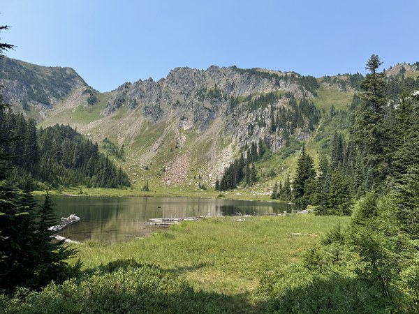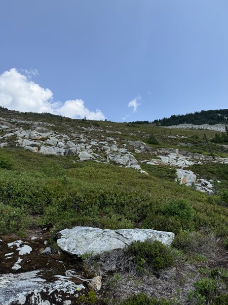 Merrit lake trail in GREAT condition and someone working on it (the only person we saw all day). Nason ridge trail a bit overgrown, but can be followed, and lots of blueberries to pick. At crescent lake head up to ridge.