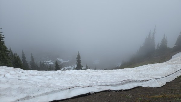 We dropped our overnight packs at Camp Windy thinking we might return to camp here due to the weather. After a break we headed for Mt Townsend with hopes the sky might clear later in the day. We were fortunate enough to get a brief glimpse of the summit as we got closer.