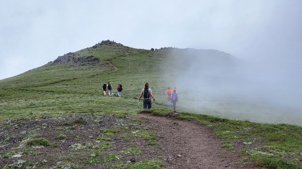 Right before we arrive Hawk's southern ridge the clouds separate briefly for us to get a view.