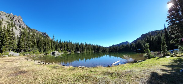 The next morning was beautiful. We had a leisurely breakfast near the now the empty lake before hiking out. Why couldn't the weather have been like this yesterday?