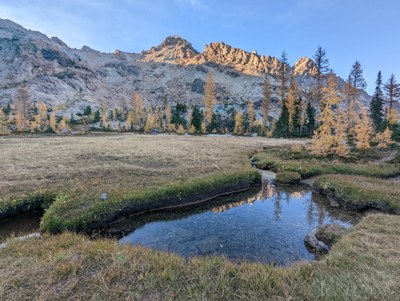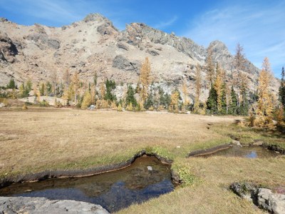 A Teanaway trifecta featuring golden larch, furry goats, fun rock scrambling, and great company!