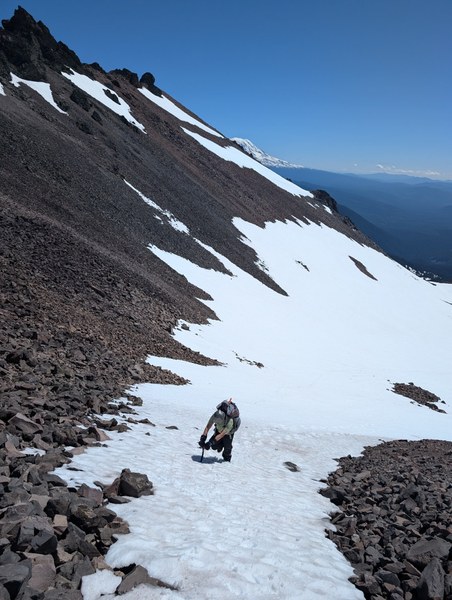 On the way down, we made careful steps and stayed together till we got back to snow and Tim could head back to camp