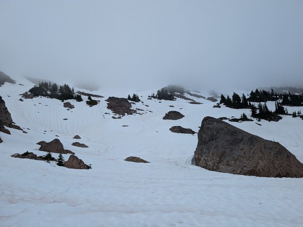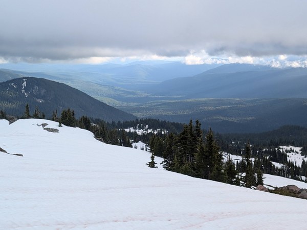 Little past lilly basin, we encountered consistent snow. We made camp in the treeline at 6200 feet.