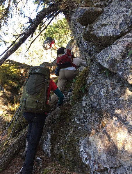 Weather conditions could not have been better for the scramble. We followed the Painted Mountain Lookout trail to the rocky ledges, we choose to go to the right in this section did not get above 2nd class.
