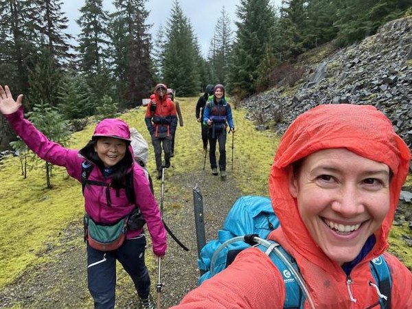 We made it back to the cars without issues, other than being soaking wet. This was a fun and strong group, making it a good time to be outside! Neal summarized our scramble as "how I learned to stop worrying and love the rain".