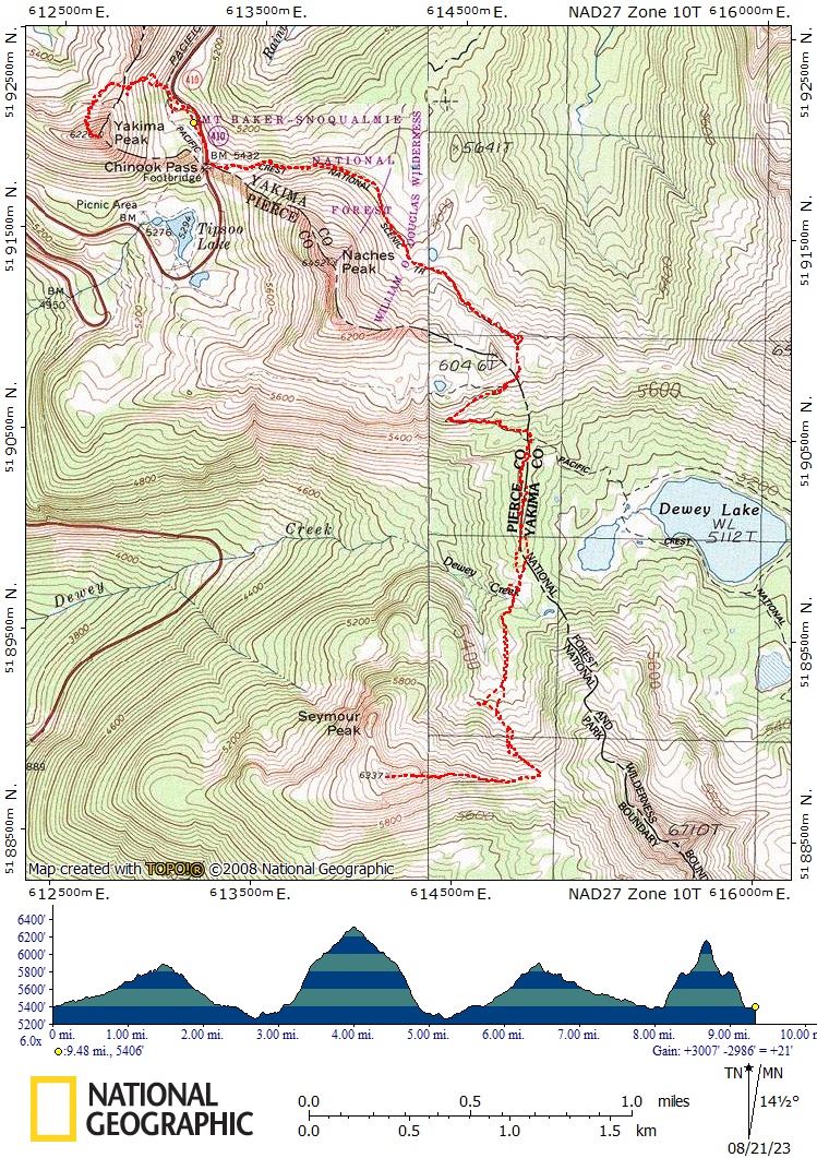 quick and dirty route info: syemour - from chinook pass head s on trail to 5400' then continue s on the occaisional game trail to the dewey/seymour saddle, from saddle head w staying on ridge(class 2, some say class 3).