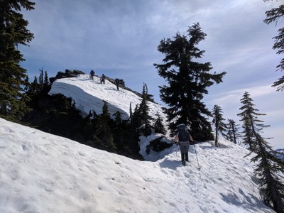 Originally scheduled as a scramble up Hibox, plans had to change when the road to Hibox proved to still be snowed in. After digging out a car, we headed to Alpental and climbed East Snoqualmie and Guye Peak instead.