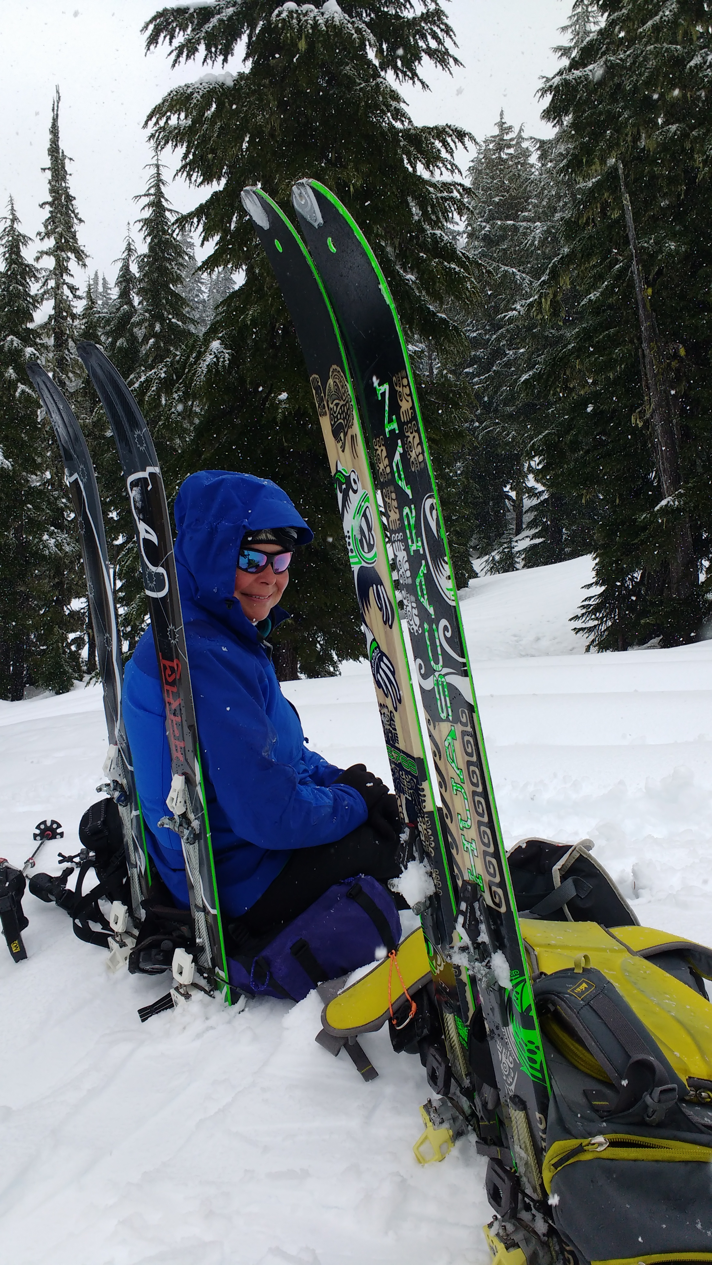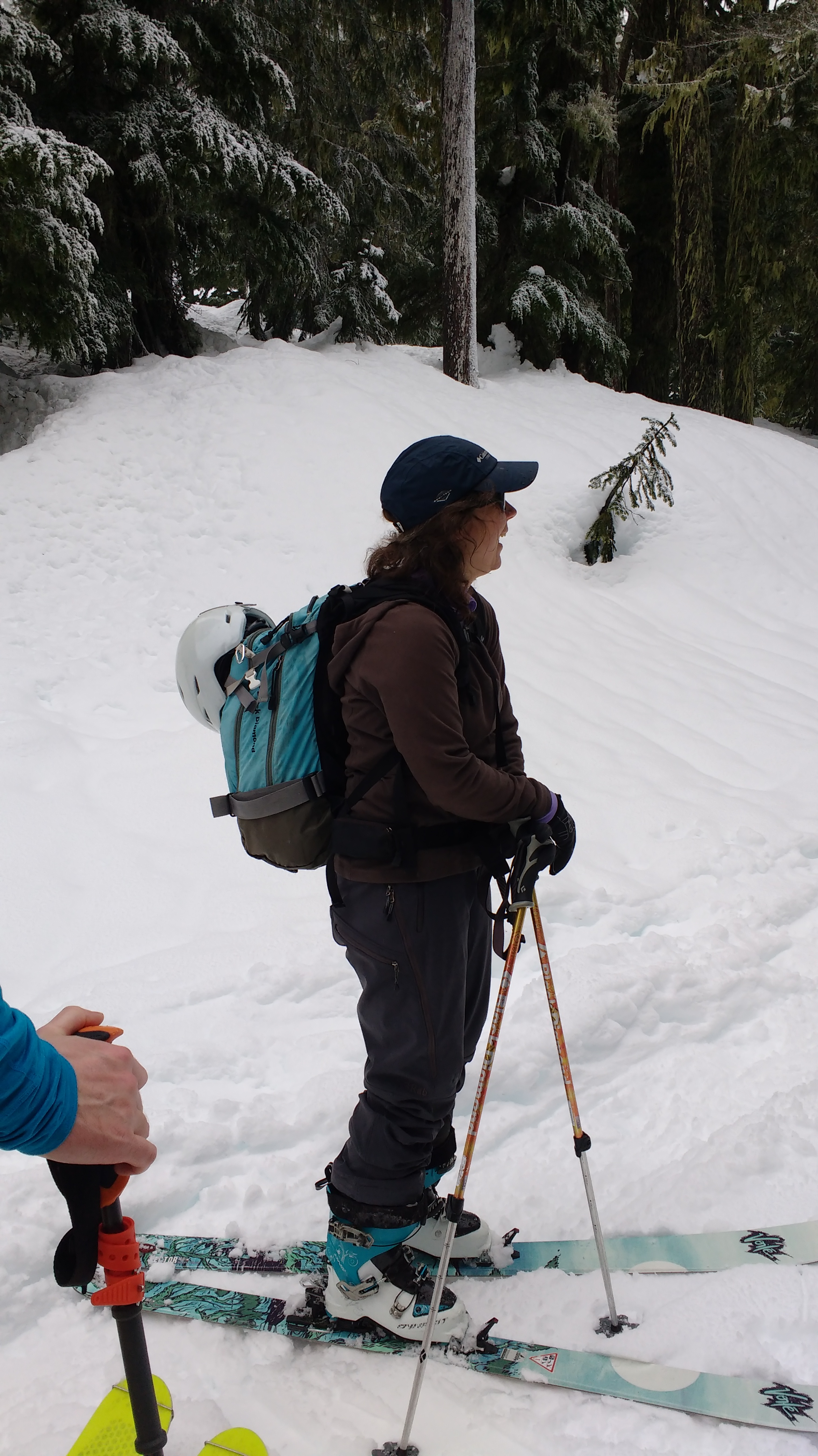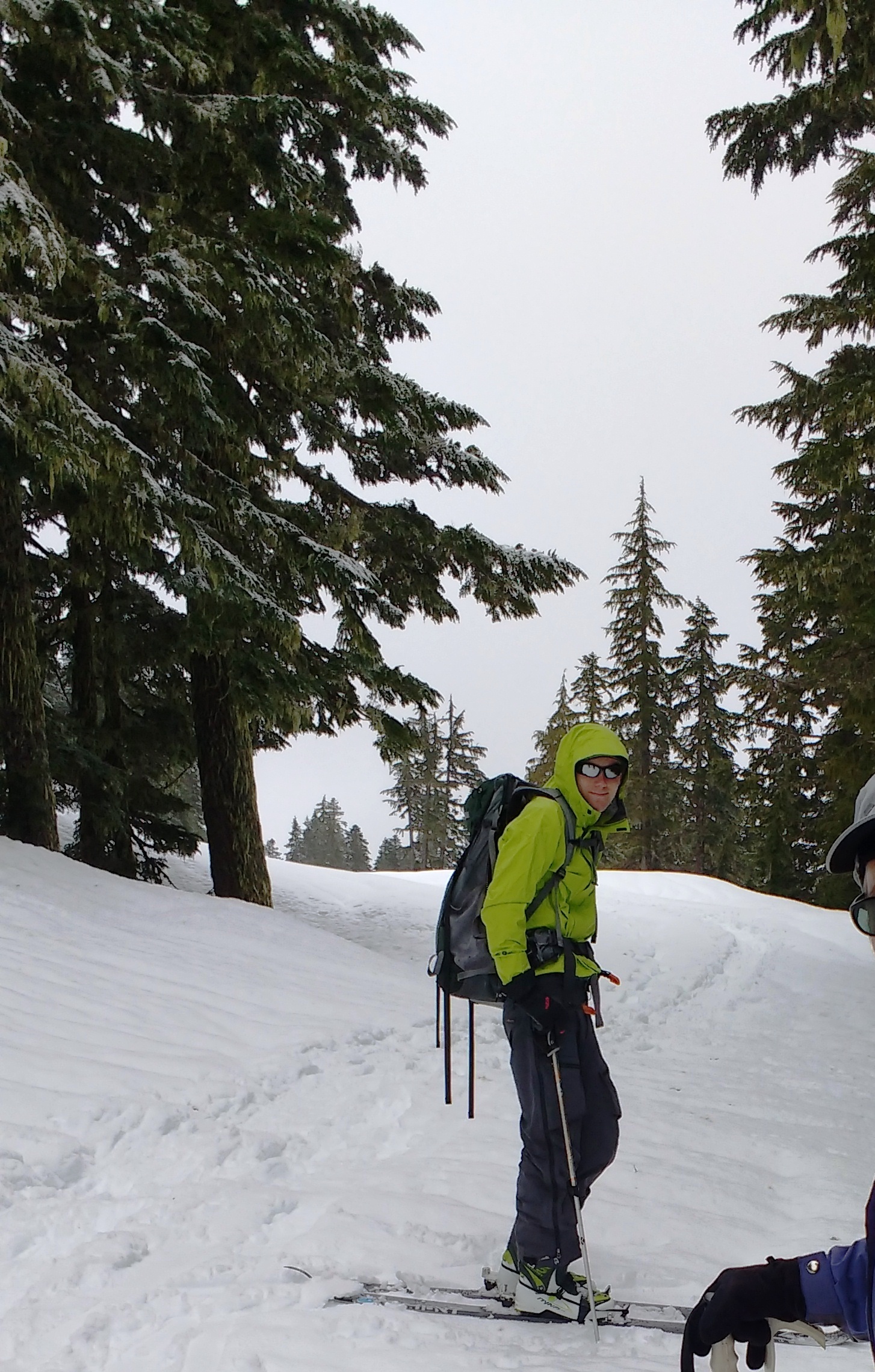 The climb was pretty consistently steeper than I am used to having learned back country skiing on the east side. Lovely country and a fun day despite deteriorating conditions between storms.
