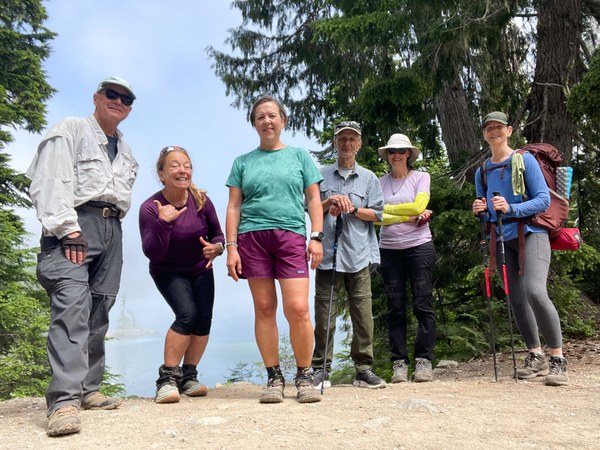 Day #2 -7.87 miles +676 elevation gain. We left camp around 9:00 am heading for the junction of the Wonderland Trail that leads to Ipsut Camp. Close to that junction we crossed the upper Carbon on a suspension bridge and headed south uphill to the Carbon Glacier viewing point which is now much farther up than where the sign is due to the receding glacier over the past 50 years. In my lifetime I remember we used to view the glacier to where the bridge crosses.
