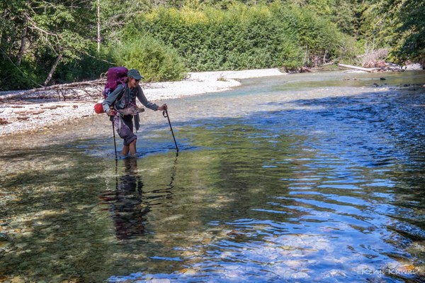 On our third day, we descended to the Chilliwack River and our first ford; mid shin-deep and easy.