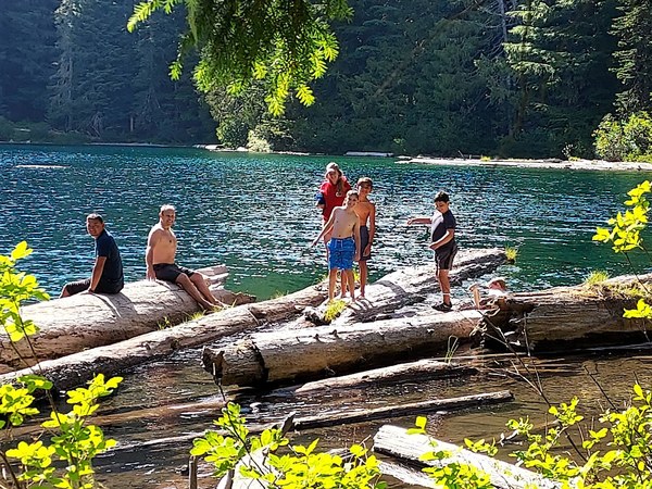 Having scoped out the lakes a few days prior, I knew that we would have better options at Granite Lake which was about 1/4 mile beyond. So our group continued to Granite Lake and sure enough, there were two good campsites on the northeast side of the lake. We arrived around 1:30pm. We set up camp and then had time for the kids to run around, play games, and go back to explore some of the floating logs in Bertha May Lake, and play a little in the water. We had an enjoyable dinner and then off to bed. The next morning, we had a leisurely breakfast and packed up camp and returned the way we came, arriving back at the cars at 12:15pm.
