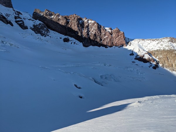 Wrapped up practice and started moving by 2:45pm to make sure we can get back down below the most sketchy part of the upper snowfield before dark.