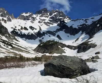 On the summit are amazing views of the Monte Cristo range and others. Kyes Peak towards the SE and Blanca Lake below to the south.