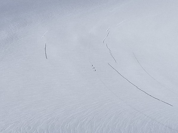 Blue Glacier is covered in snow; crevasses are starting to open up, but the 2 or 3 we saw are 3” wide at max. The snow up to Snow Dome was good except for some post holing near the rock bands. The traverse from Snow Dome to Crystal Pass has obvious crevasses which are easy to navigate around. The bergschrund is open so direct routes to the summit are inaccessible.