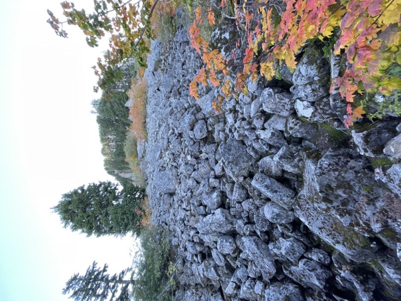 East of persis is a prominence leading to a cliff. On map appears to be a good descent, but it is a steep cliff. 100 feet prior and to the right is an opening in the trees to a steep talus that is easier to descend. When you look back it is the obvious route to avoid bushwacking as it is likely the apex to the initial talus rockfall.
